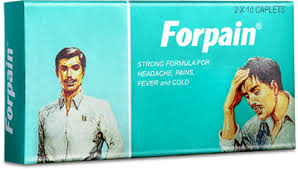 Forpain Caplet is used to treat painful conditions such as headache including migraine, which is characterized by a recurrent headache ranging in severity from moderate to severe, toothache, backache, pain and inflammation in the joints (rheumatic pain), painful monthly cycles (dysmenorrhoea) and fever (febrile conditions). It is also used to relieve the symptoms of colds, flu and sore throat. This medicine works by exerting a painkiller action and reducing the body temperature when you have a fever, the actions which are carried by paracetamol. Caffeine acts by helping enhance the effectiveness of paracetamol. This medicine helps by reducing body pain and fever.